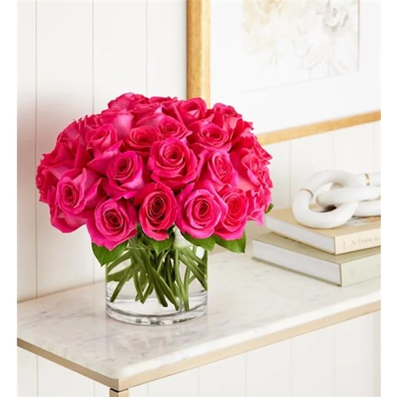 Eye-catching hot pink roses with a fun, modern vibe. Our vibrant blooms are tightly gathered into a chic dome shape with lush greenery by local florists, then hand-delivered to someone special with style and sentiment.